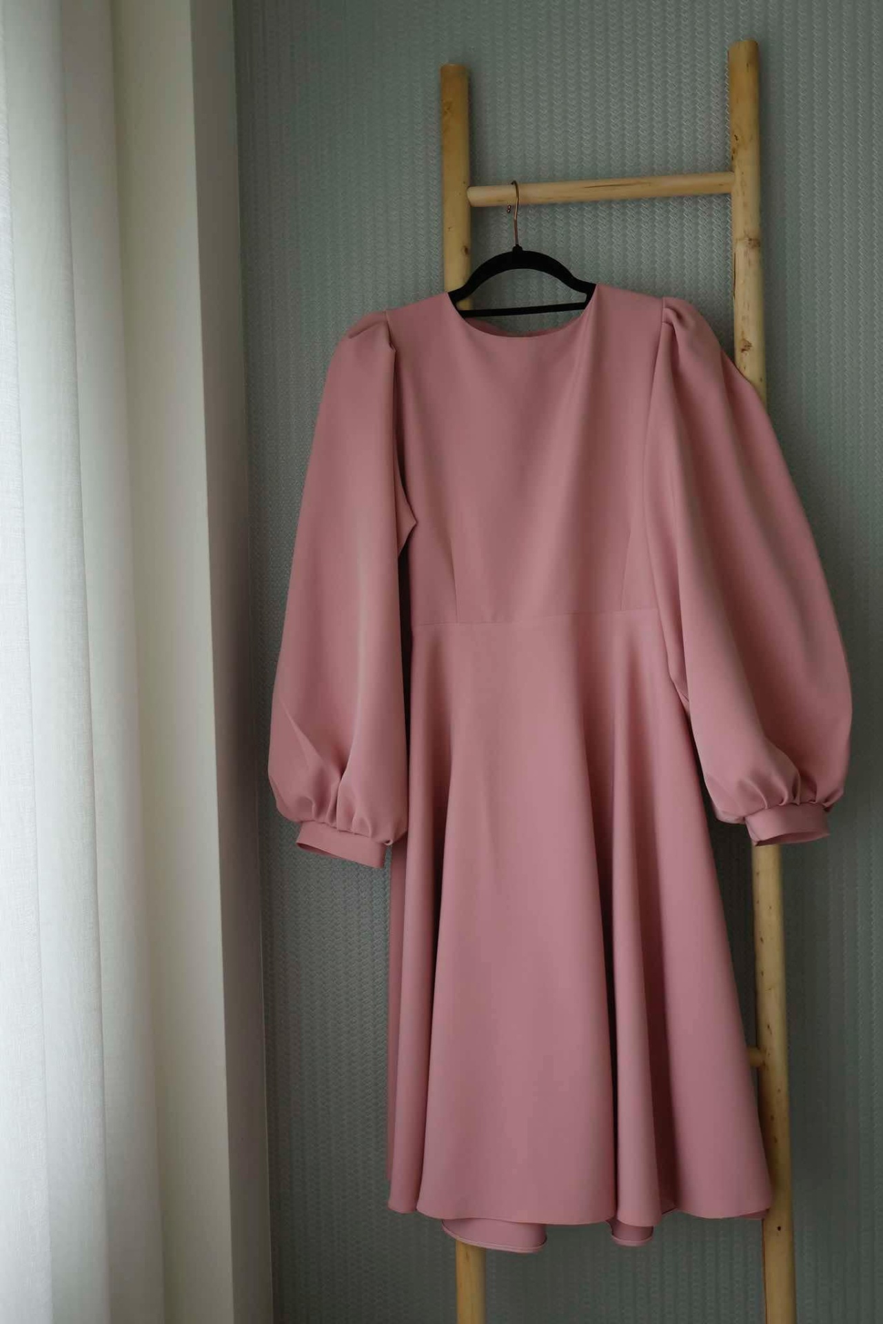 Um vestido elegante que se destaca pelo corte sofisticado e pela delicadeza dos detalhes.Com um design minimalista, ele valoriza a silhueta sem perder o conforto. As mangas volumosas adicionam um toque de sofisticação e modernidade, enquanto o tecido fluido confere leveza ao movimento.